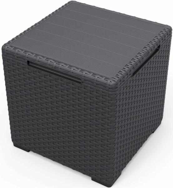 A Vigo kerti tárolós asztal tökéletes választás, ha egy több funkciós bútort keresel a teraszra vagy az erkélyre. A grafit színű, fonott megjelenésű asztal nemcsak egyedi és modern kiegészítője a teraszodnak, hanem hasznos tárolóhelyként is szolgál.